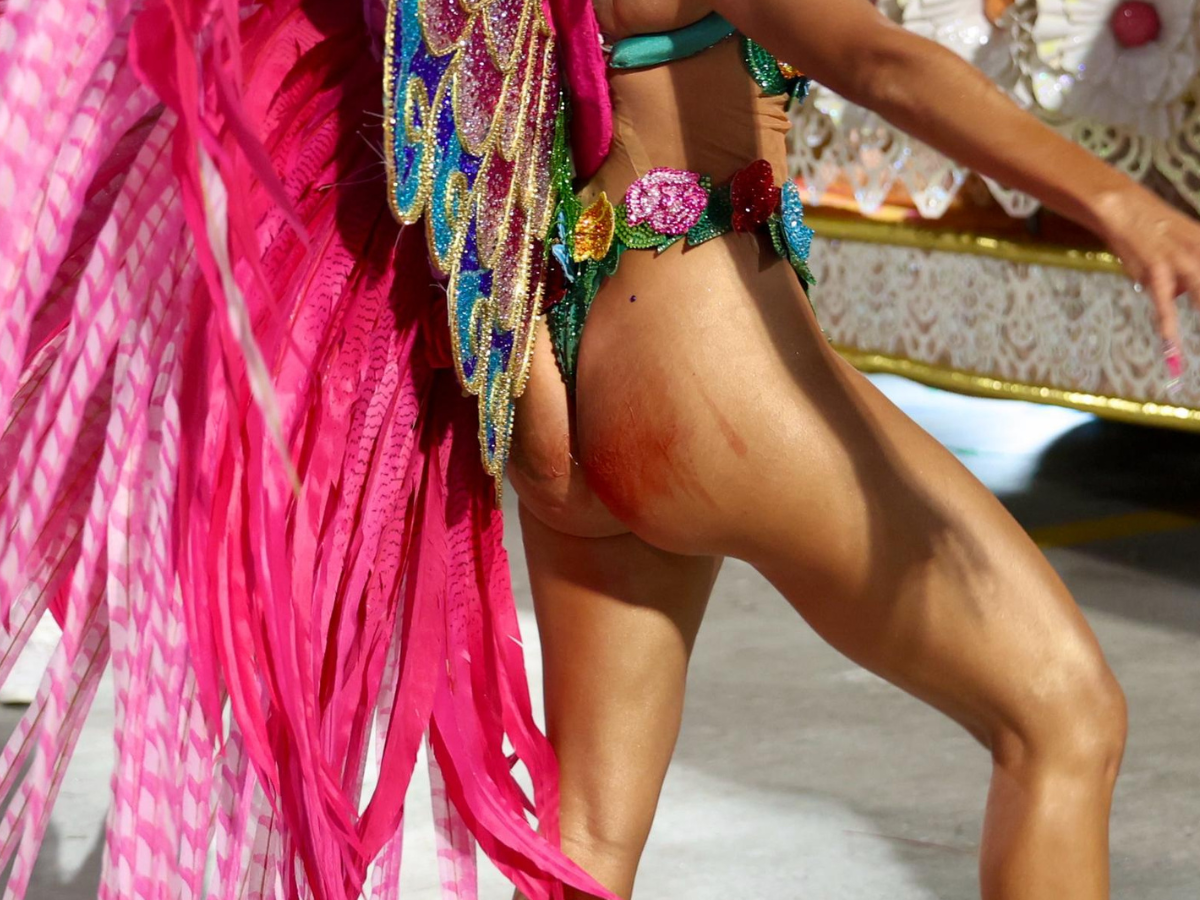 Mas imagens, é possível ver o bumbum da dançarina com sangue, do lado direito, além do local estar vermelho.