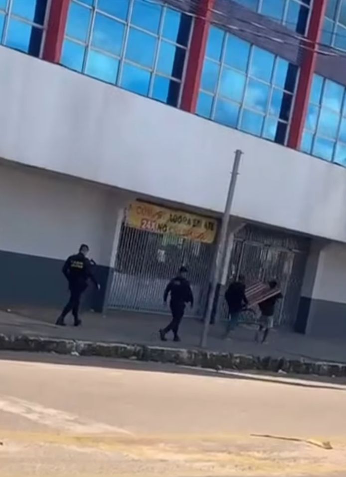 Polícia acompanha homem em situação de rua em ação no centro de Rio Branco; tensão toma conta da cena/Foto: Reprodução