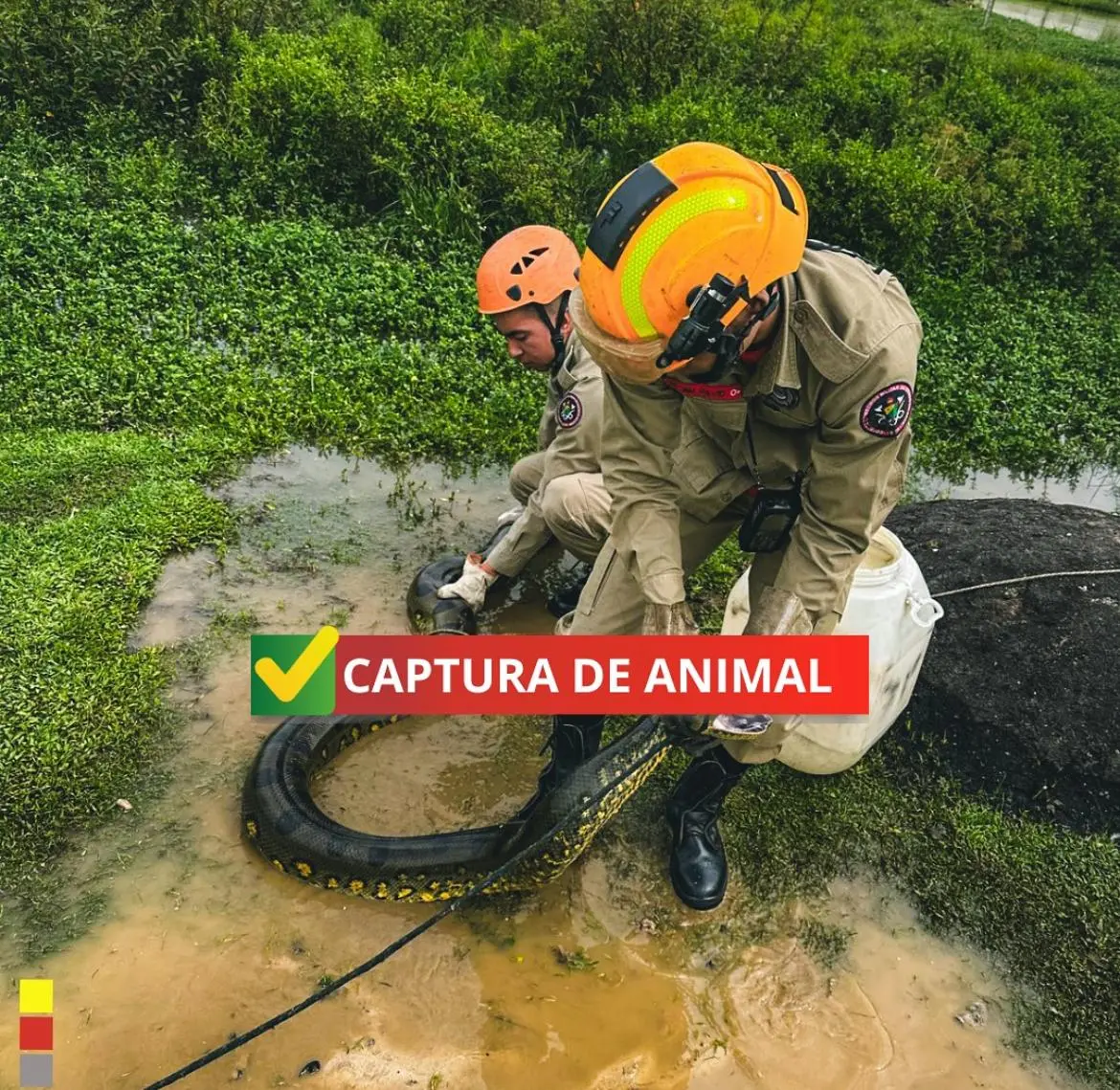 Ao chegarem ao local, os bombeiros encontraram a cobra, também conhecida como anaconda, ainda próxima à sua presa, sem ter iniciado o processo de ingestão. Com técnicas seguras e equipamentos adequados, a guarnição conseguiu realizar a captura sem riscos para os moradores. Após a ação, a sucuri foi devolvida ao seu habitat natural.