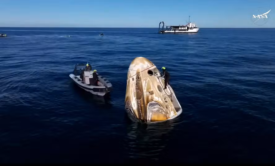 A dupla viajou a bordo da cápsula Dragon Freedom e, antes da reentrada na atmosfera, vestiu seus trajes espaciais como parte dos procedimentos de segurança. Esses protocolos foram essenciais para garantir uma descida controlada e proteger a tripulação na fase final da missão. O resgate dos astronautas ocorreu em um ponto próximo à costa da Flórida, nos Estados Unidos.