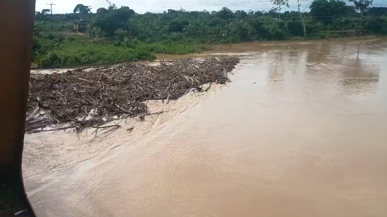 Na manhã desta segunda-feira (17) foi possível verificar troncos e galhos de árvores “presos” em um dos pilares. Com isso, os ribeirinhos que viajam nas embarcações precisam redobrar os cuidados para evitar naufrágios.