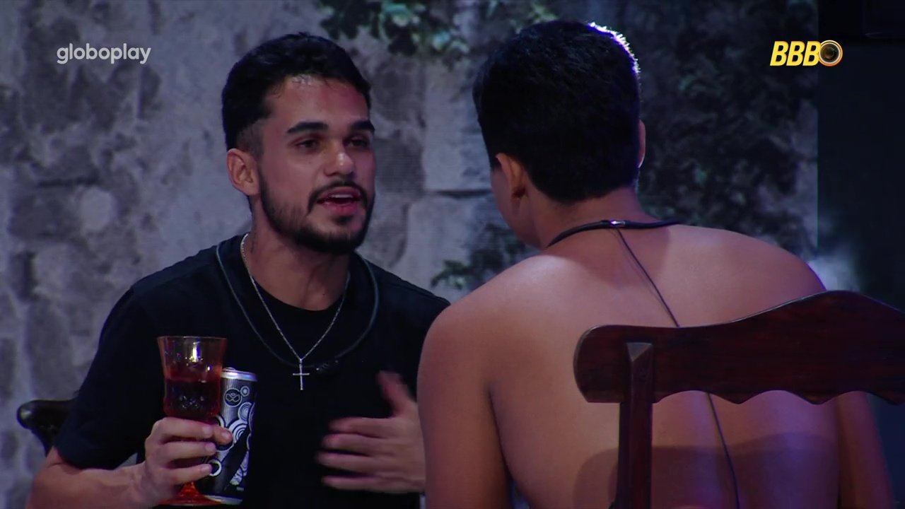 João Gabriel desabafa com Guilherme sobre sua insatisfação com Aline, tentando validar sua visão. Ele acusa Aline de “sabonetar” ao tratar Gracyanne de forma branda, enquanto seria mais dura se a situação envolvesse Renata ou seu irmão. Embora esteja com vontade de confrontá-la imediatamente, ele afirma que vai esperar pelo Sincerão, decisão que tomou após conversar com a psicóloga.