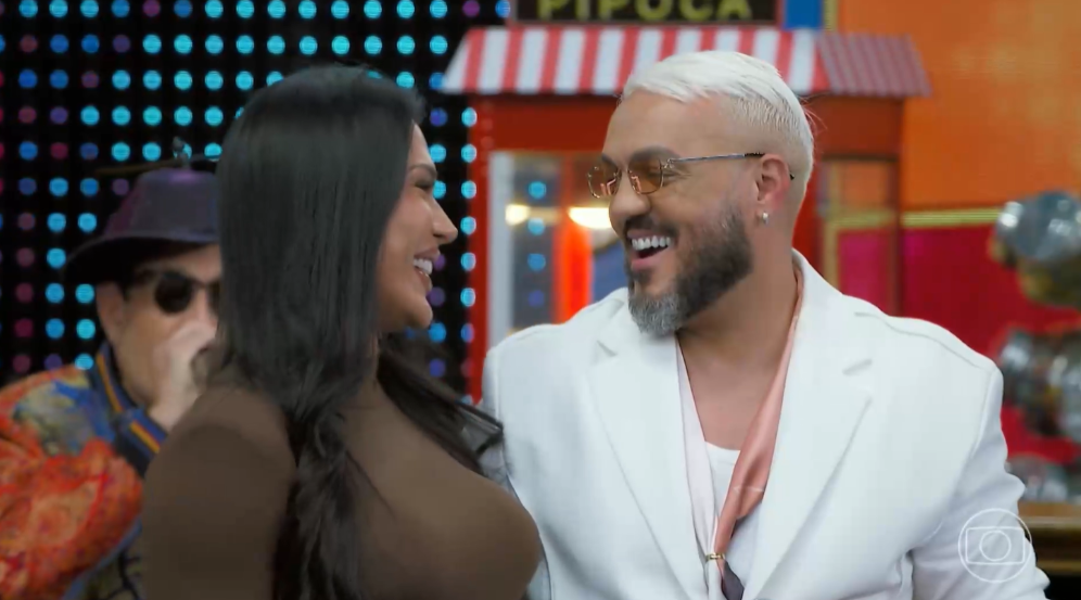 Ao convidar Gracyanne para o palco, Luciano Huck fingiu estar surpreso ao dizer: “Eita, o Belo está aqui, não estou acreditando. Que coincidência!”