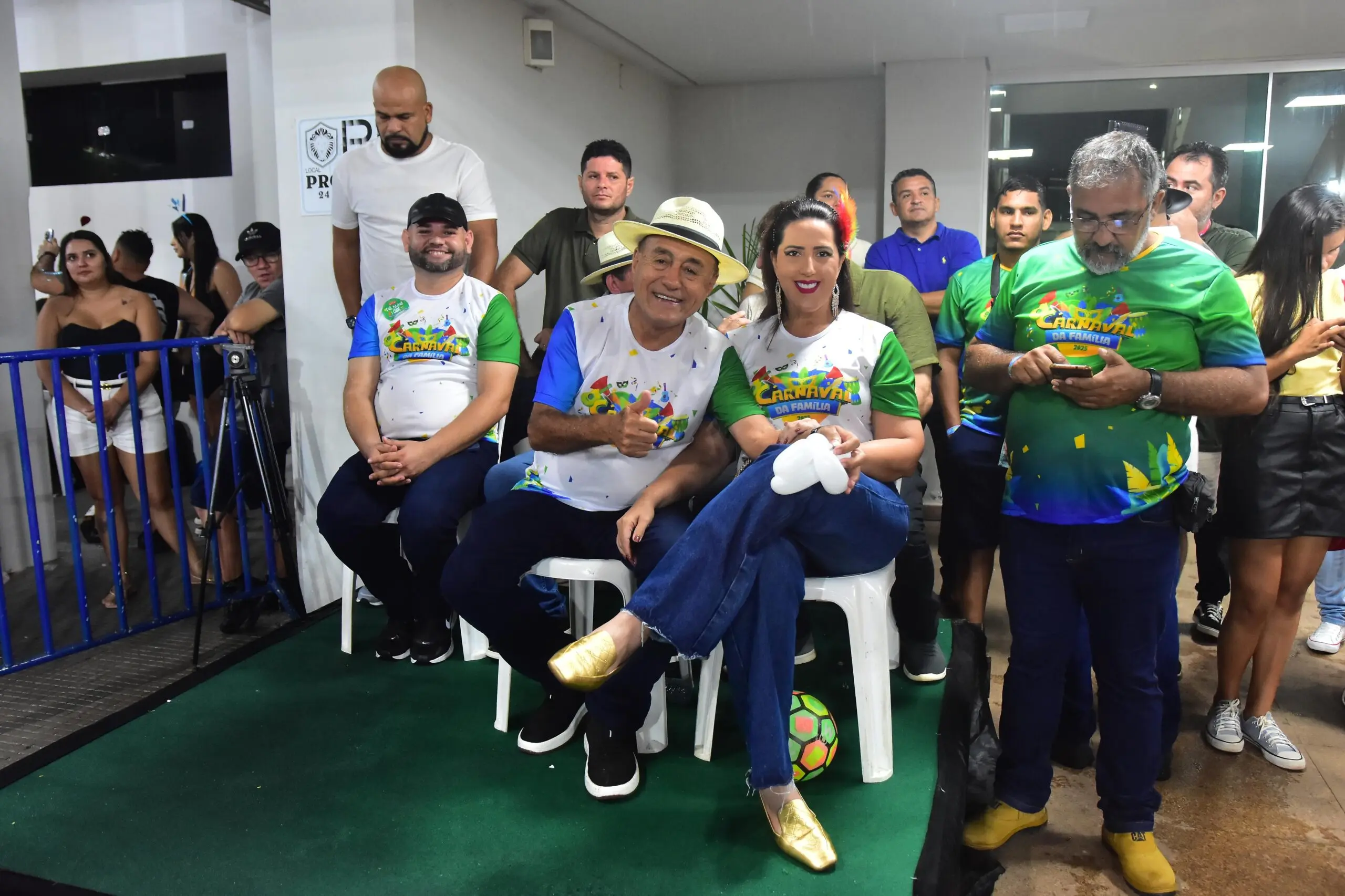 Ao lado do vice-prefeito, Alysson Bestene, Tião Bocalom acompanhou o concurso de blocos carnavalescos.