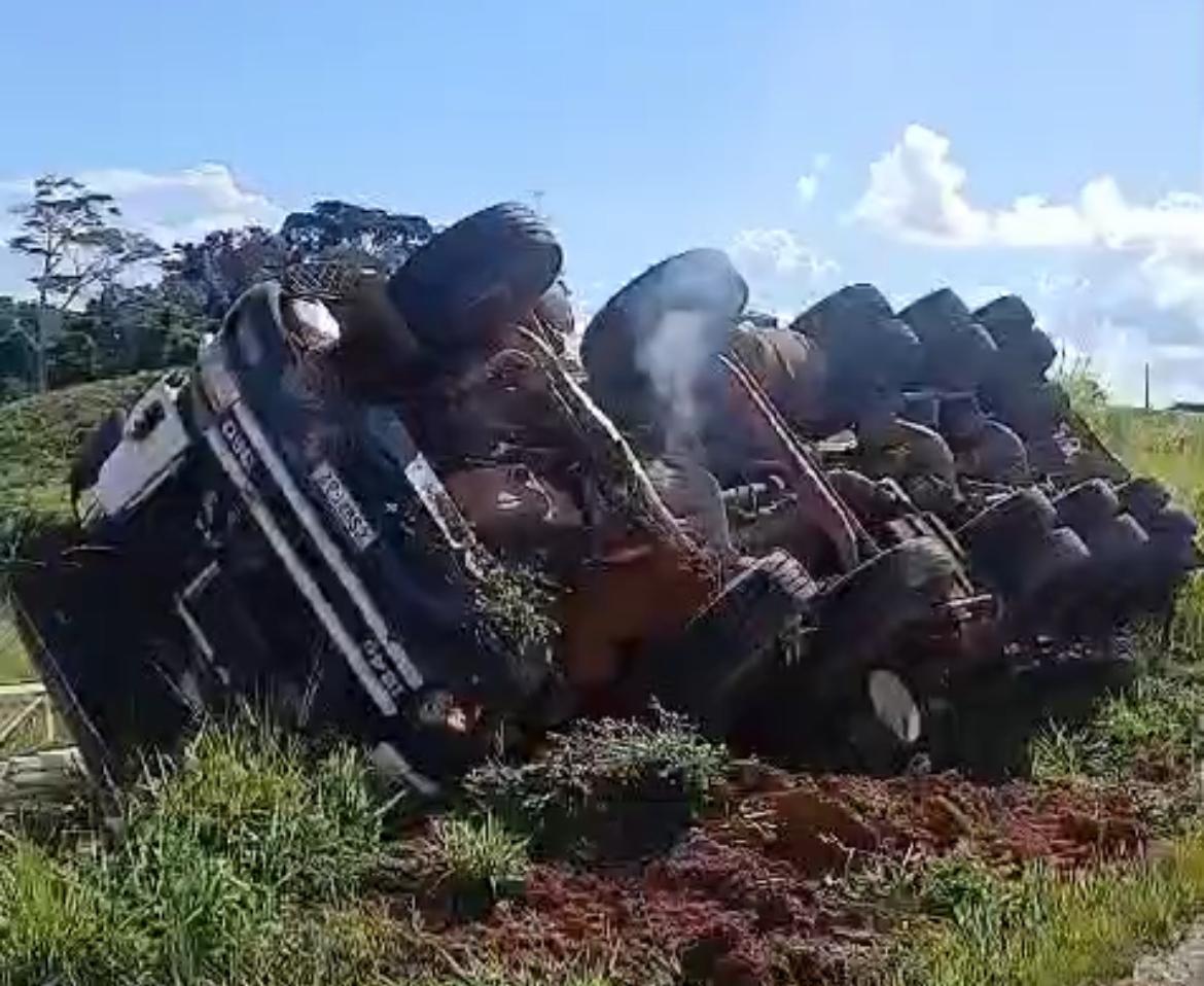 Segundo informações no próprio vídeo, o veículo teria ido para a lateral da pista, que desbarrancou, ocasionando o tombamento. O caminhão ficou com os pneus para cima.