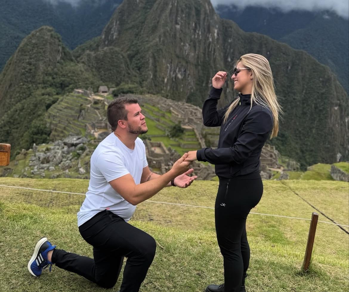 O pedido aconteceu durante uma viajem romântica do casal para o Peru. O casal tornou público o relacionamento em janeiro deste ano.