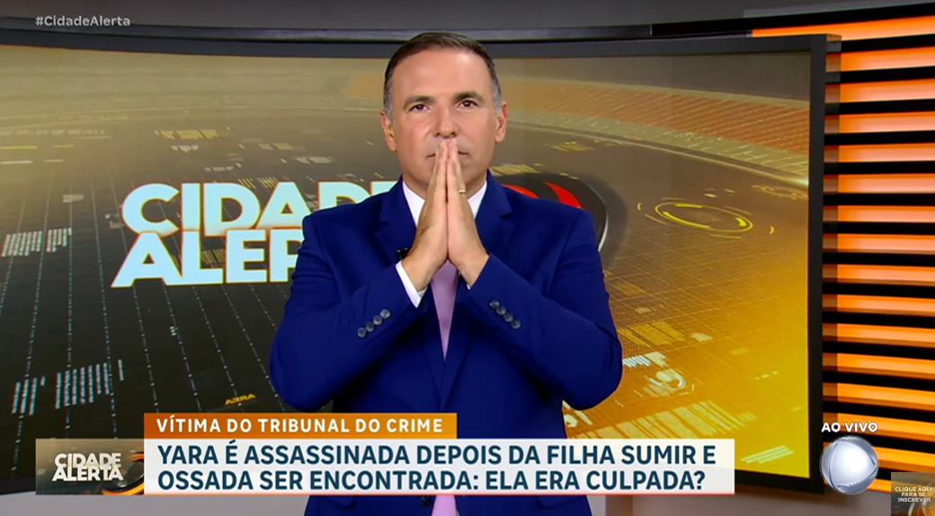 O caso de Yara Paulino foi destaque no Cidade Alerta, da Record TV, com apresentação de Reinaldo Gottino/Foto: Reprodução/Record