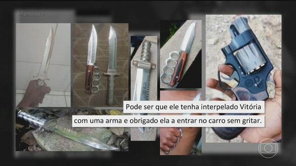 A polícia também encontrou no celular de Maicol fotos de facas e de um revólver. Segundo o relatório, Maicol pode ter usado a arma para obrigar Vitória a entrar no carro dele sem gritar.