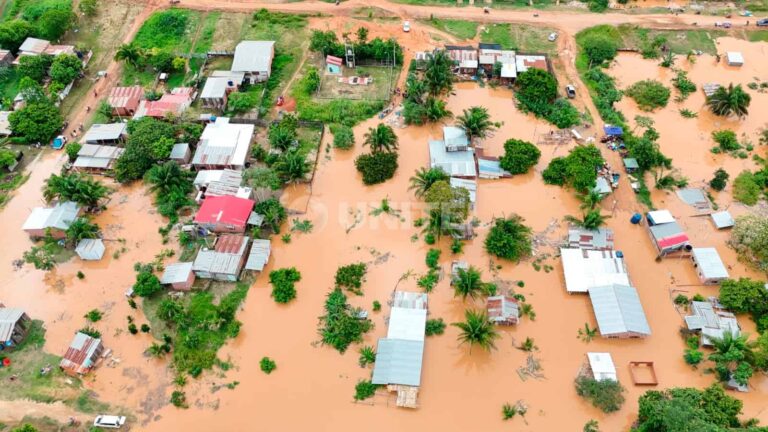 Inundações em bairros de Cobija, como Petrolíferos, após o transbordamento do Igarapé Bahia/Foto: O Alto Acre