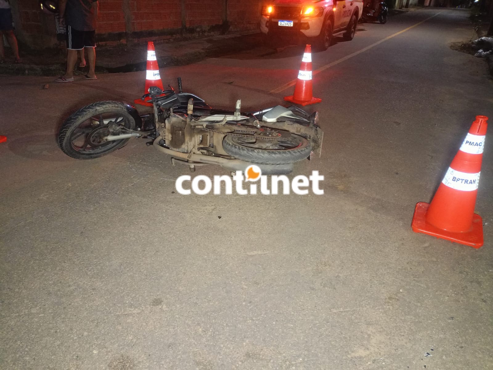 O motociclista Dereck Greyck Carlos de O. S., de 34 anos, ficou ferido em uma colisão entre um carro e uma moto na noite desta quarta-feira (5), no cruzamento da rua da Amizade com a rua Boa União, no bairro Bahia Nova, na região da Baixada da Sobral, em Rio Branco.