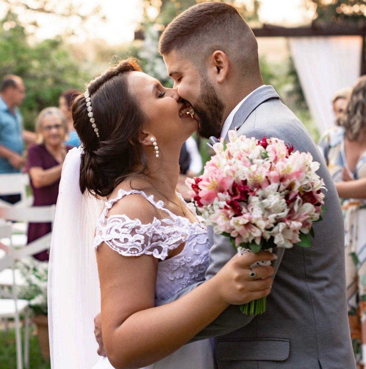 Lindo e feliz o casal Ana Maria Teles e Alberto Pascoal disse sim na tarde do domingo de carnaval na aprazível chácara da família dela.
