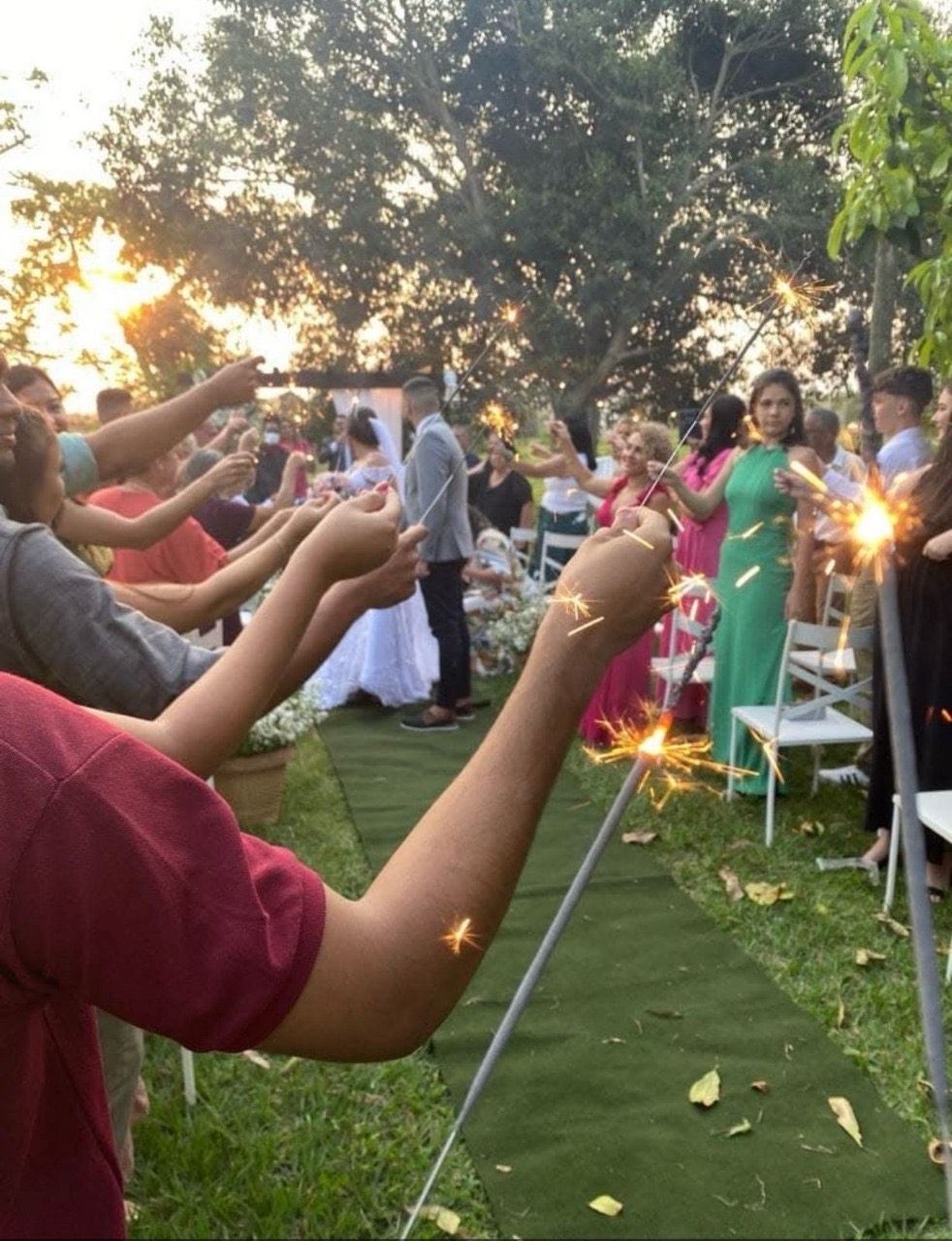 Um entardecer lindíssimo foi concedido para que os noivos brindassem com a família.