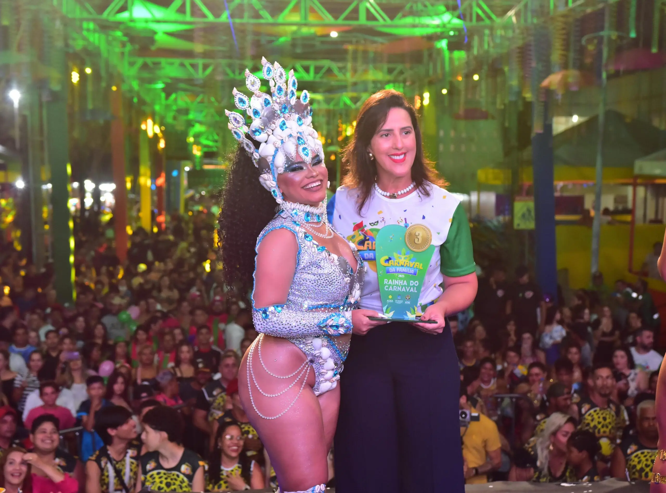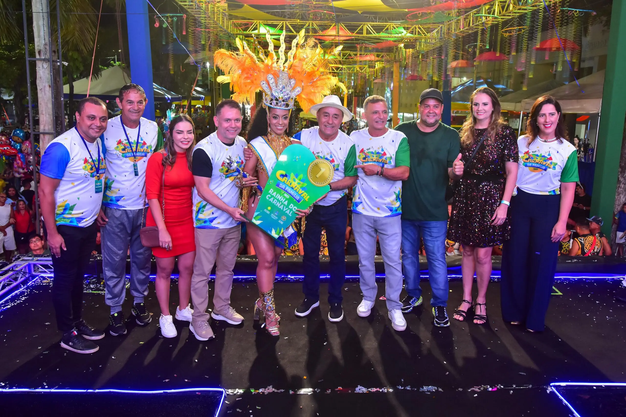 A primeira noite do Carnaval da Família 2025 agitou os foliões rio-branquenses. A noite contou com a escolha da realeza, com a coroação do Rei Momo, sendo Júnior Mônaco o escolhido, e Rainha do Carnaval, com coração de Erica Oliveira.