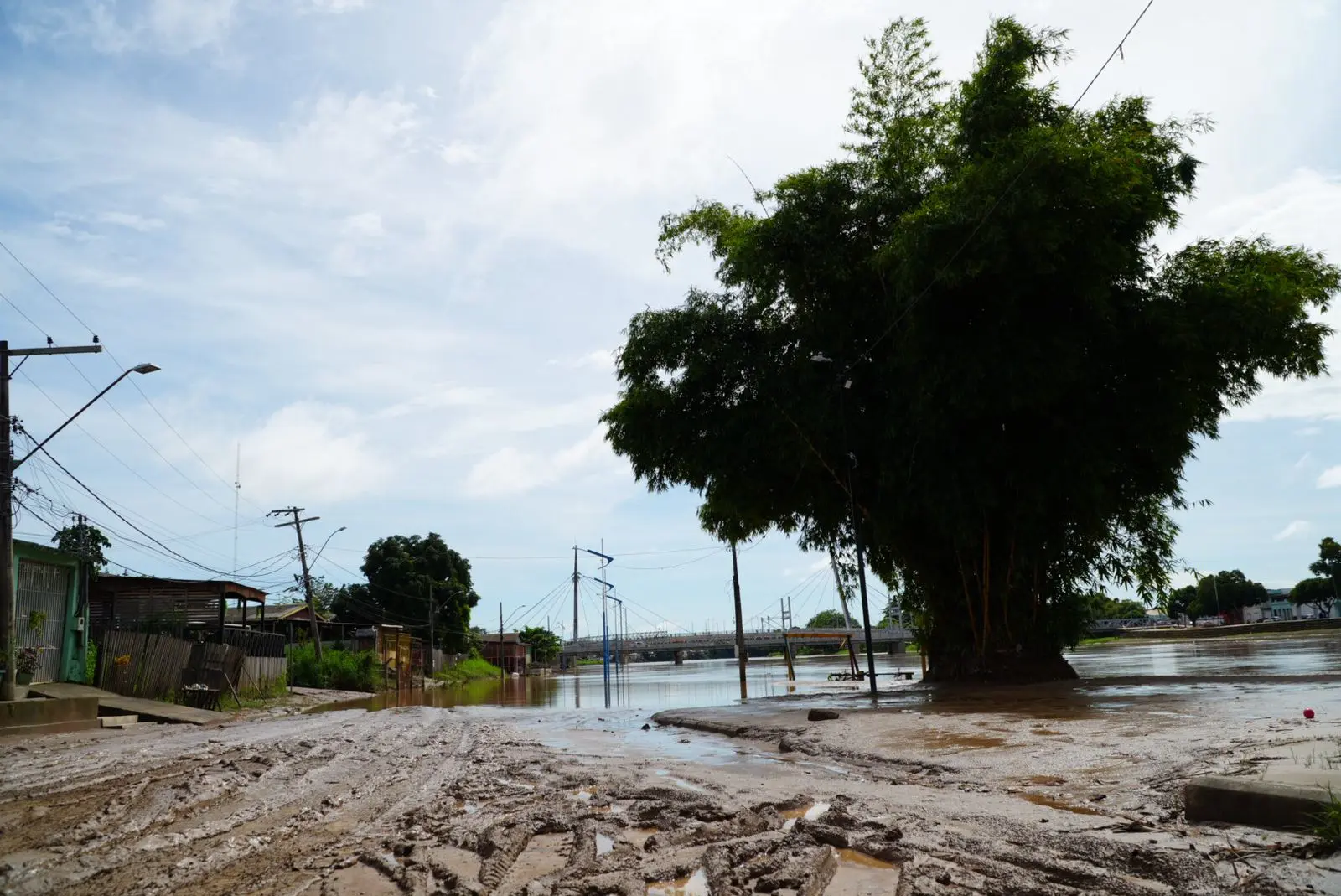 Com a queda no nível das águas, o local já está sendo tomado por lama, como acontece em todos os anos, quando o rio transborda.