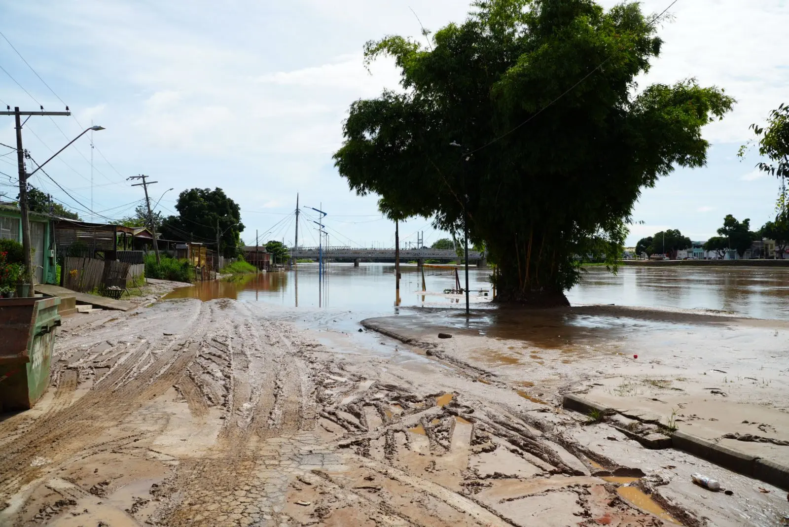 Com a queda no nível das águas, o local já está sendo tomado por lama, como acontece em todos os anos, quando o rio transborda.