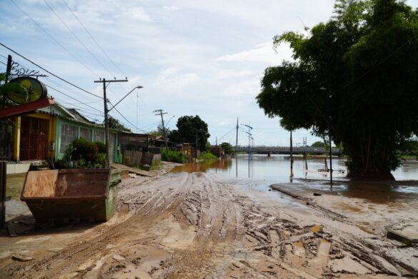 A expectativa é que o rio saia da cota de transbordamento, que é de 14 metros, nas próximas horas, de acordo com a Defesa Civil Municipal.