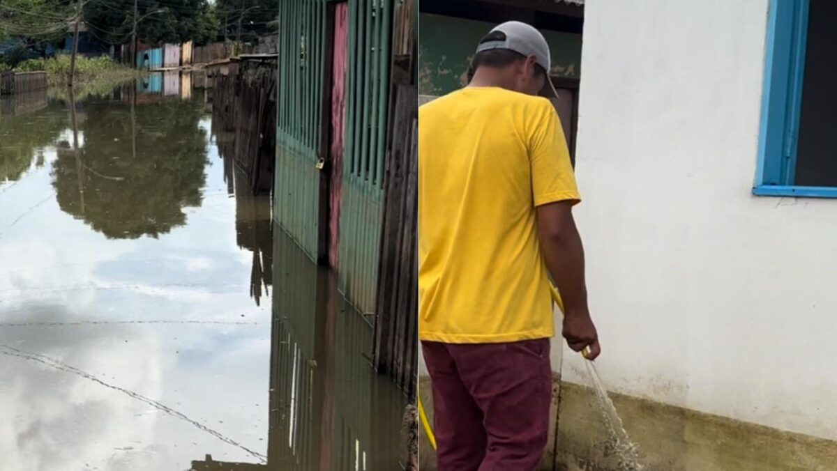 O nível do Rio Acre começou a baixar, com isso, as casas e estabelecimentos atingidos ficam sujos de lama, com mal cheiro e a população precisa limpar. No bairro Ayrton Senna, em Rio Branco, as águas começaram a vazar.
