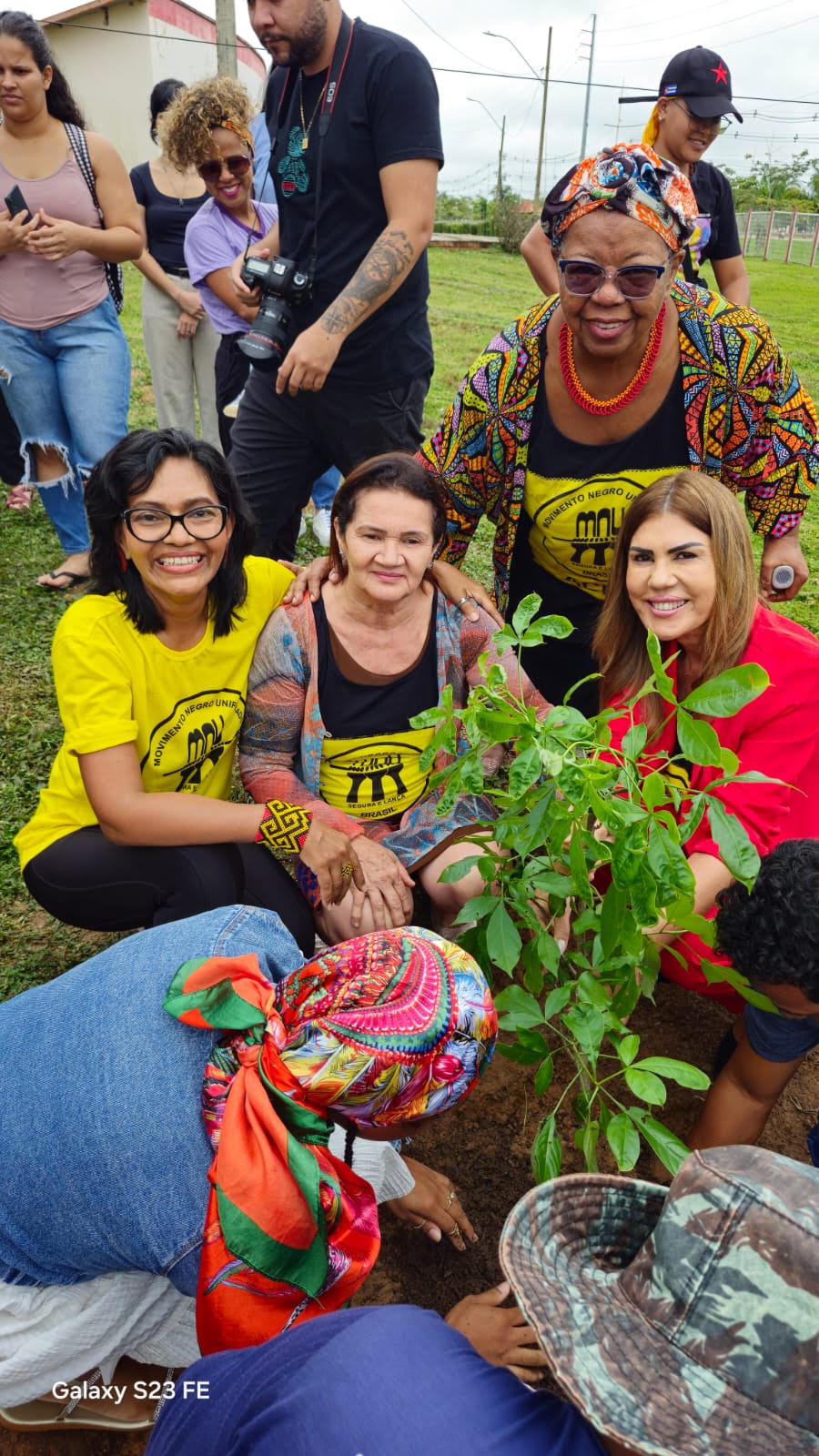 O plantio do Baobá reforça o compromisso da universidade e das instituições parceiras com a diversidade, a sustentabilidade e a valorização das raízes africanas. Na foto, Jayce Barsil, Dulce Benício, Júlia Feitosa e Guida Aquina.