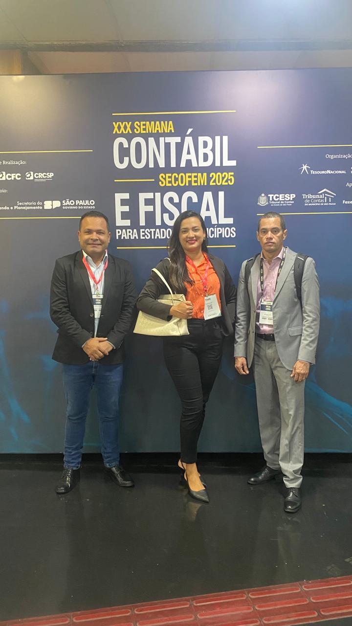 Tadeu Hassem está acompanhado dos contadores Ricardo Farias e Raiane Oliveira, ambos da Assembleia Legislativa do Acre (Aleac), reforçando o compromisso da Casa com a qualificação técnica e a modernização da gestão fiscal no estado.