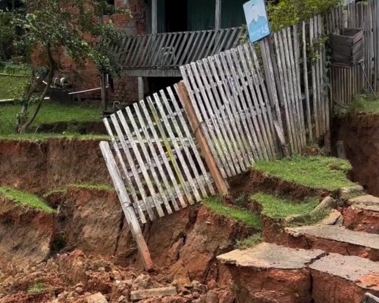 Nas imagens Ă© possĂvel observar que o desbarrancamento atingiu parte do terreno de um imĂłvel/ Foto: Reprodução/ Instagram