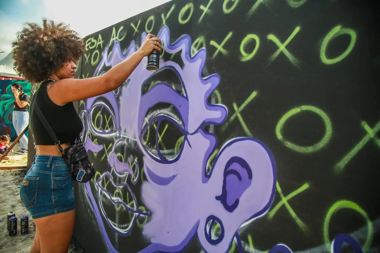 “Uma das maiores dificuldades que enfrentei foi o fato de a cena do graffiti ser predominantemente masculina. No início, tive que buscar referências femininas pela internet, pois eram poucas as mulheres ocupando esses espaços”, conta.