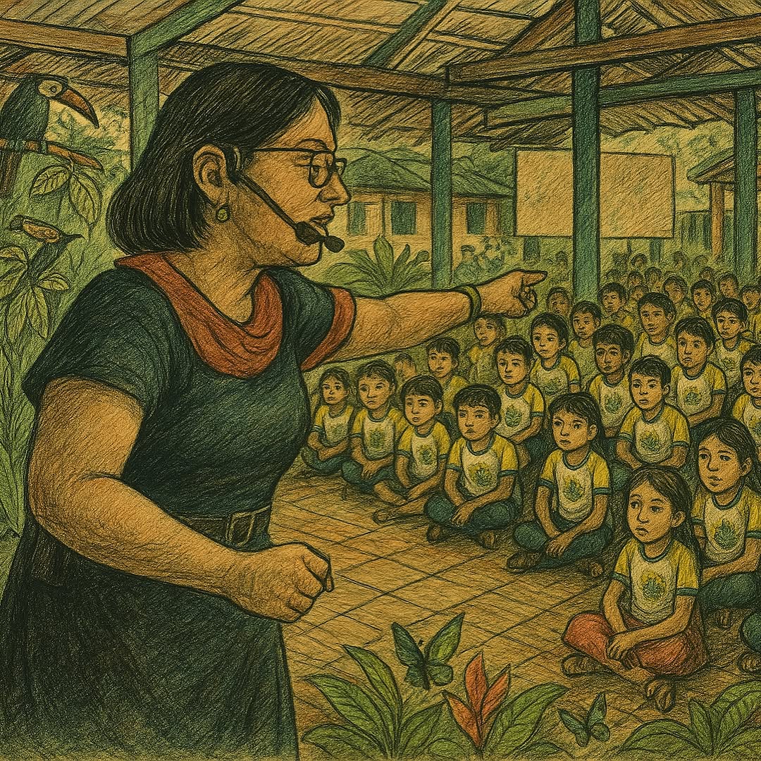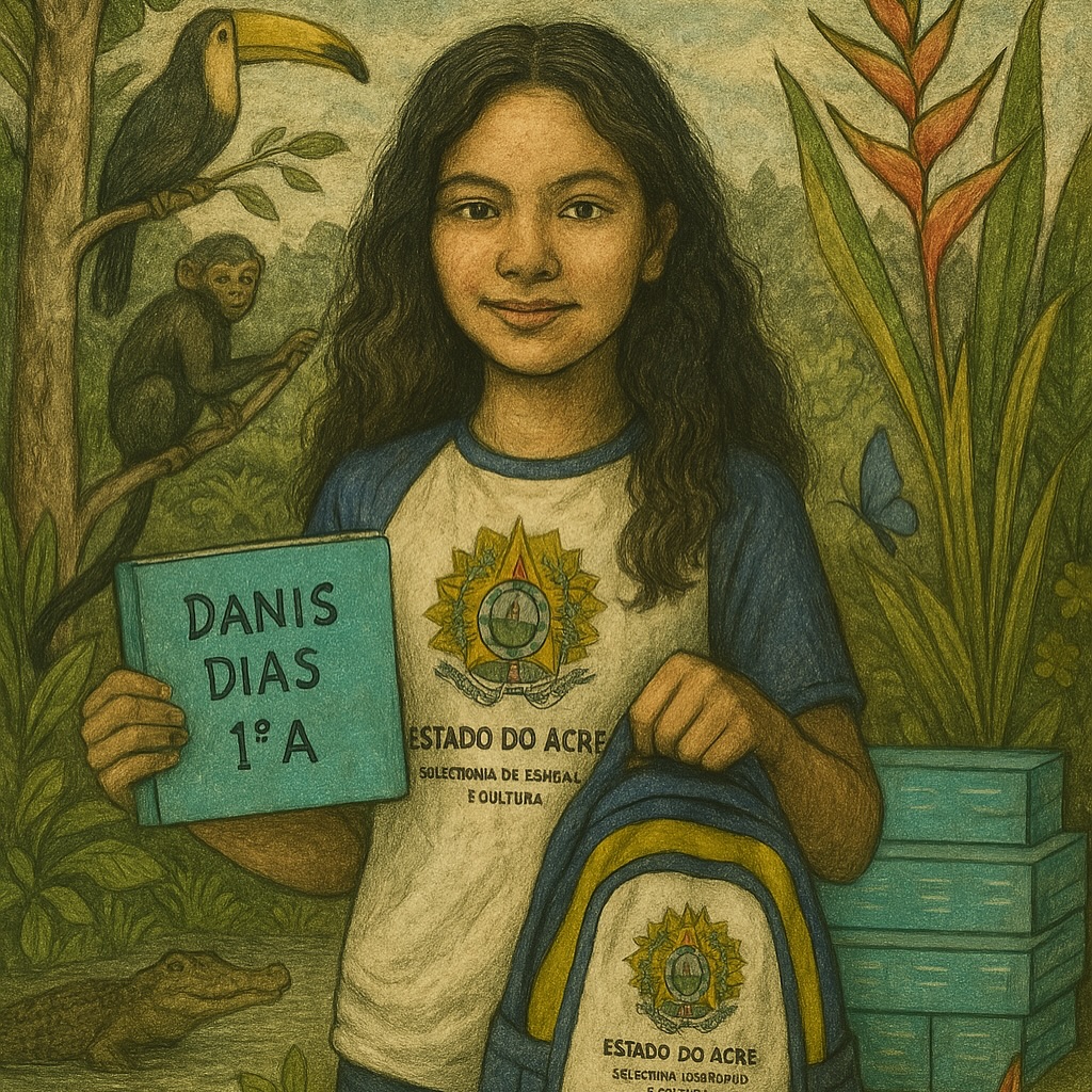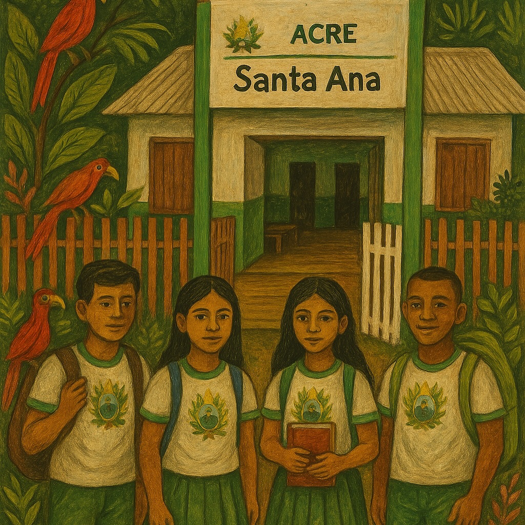 “Nada de castelo voando… aqui as escolas nascem no meio da floresta mesmo, entre seringueiras e histórias reais. No lugar dos bichinhos mágicos, tem aluno forte e educação em todo o estado”, diz a legenda da publicação, referenciando as obras de Miyazaki.