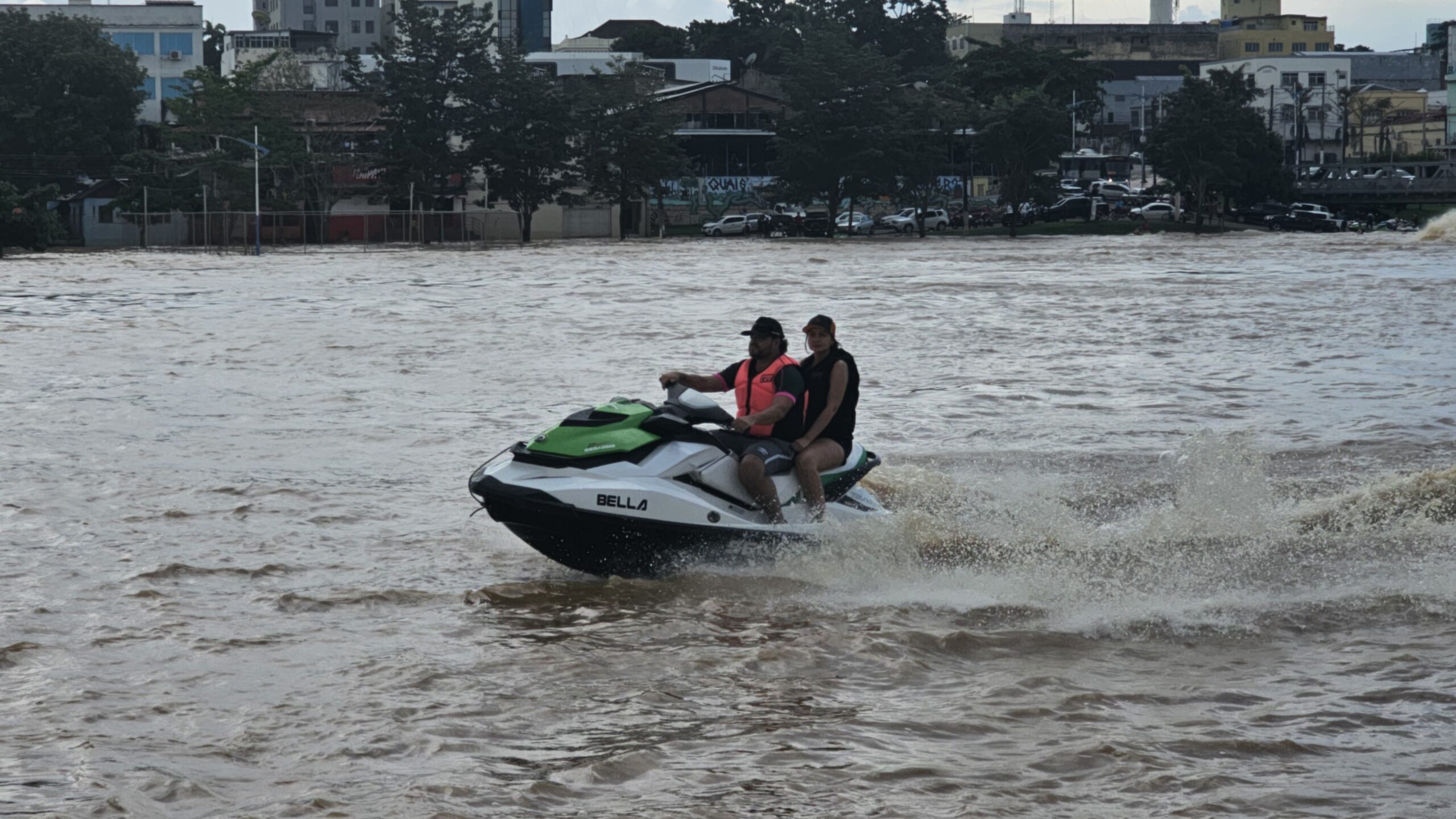 As enchentes podem ser um momento de terror para parte da população, entretanto, para outra parcela o momento é de entretenimento.
