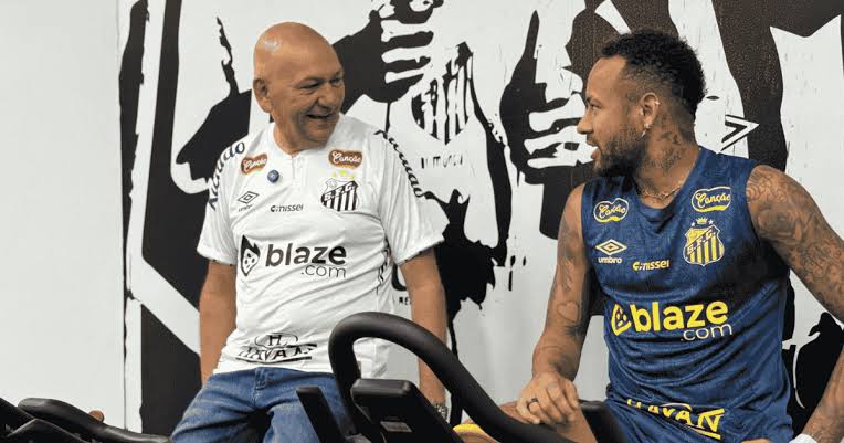 Neymar apareceu em um vídeo, nesta quinta-feira (27), pedalando em uma bicicleta ergométrica ao lado do empresário Luciano Hang, que visitava o CT Rei Pelé, em Santos.