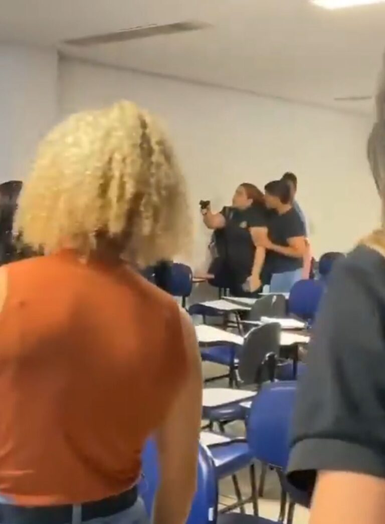Um vídeo que circula no X – antigo twitter – nesta segunda-feira (31) tem causado grande repercussão ao mostrar uma discussão acalorada dentro de uma sala de aula, que acaba em agressões físicas e na exibição de uma arma de fogo. Nos comentários da publicação, internautas afirmam que o caso teria ocorrido em uma faculdade de Maceió, mas ainda não há confirmação oficial sobre o local ou a identidade das envolvidas.