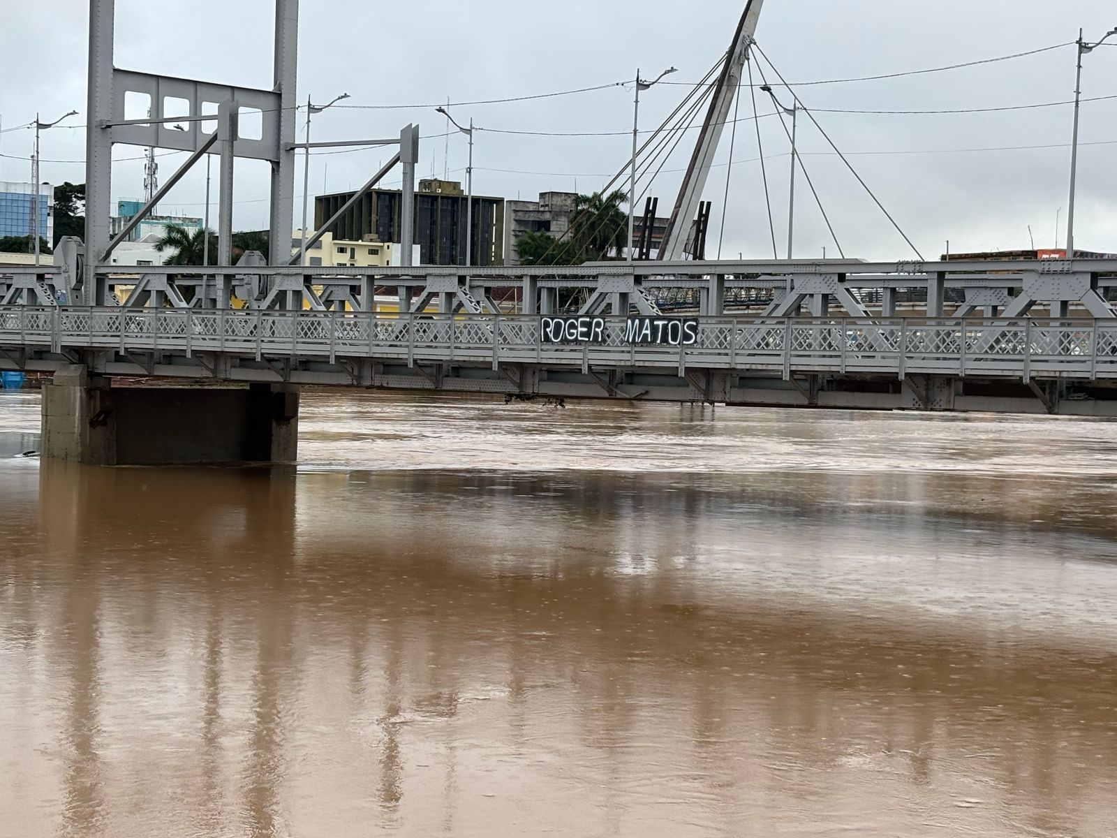 A família do jovem Roger da Silva Matos, de 18 anos, que desapareceu no último sábado (15), quando tomava banho no Rio Acre e foi subir em um balseiro e não retornou para superfície, estendeu uma faixa com o seu nome na ponte Juscelino Kubitschek, ou popularmente conhecida, a ponte metálica.
