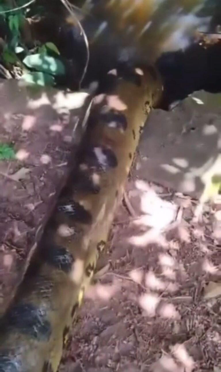 O vĂdeo começa com a imagem da serpente imensa se arrastando pelo chĂŁo, enquanto um menininho, visivelmente preocupado, repete incansavelmente: “Volta mĂŁe, volta Julio”, enquanto tenta alertar a mĂŁe e o acompanhante sobre o perigo iminente. A mĂŁe, embora curiosa, parece hesitante em se aproximar da enorme cobra.
