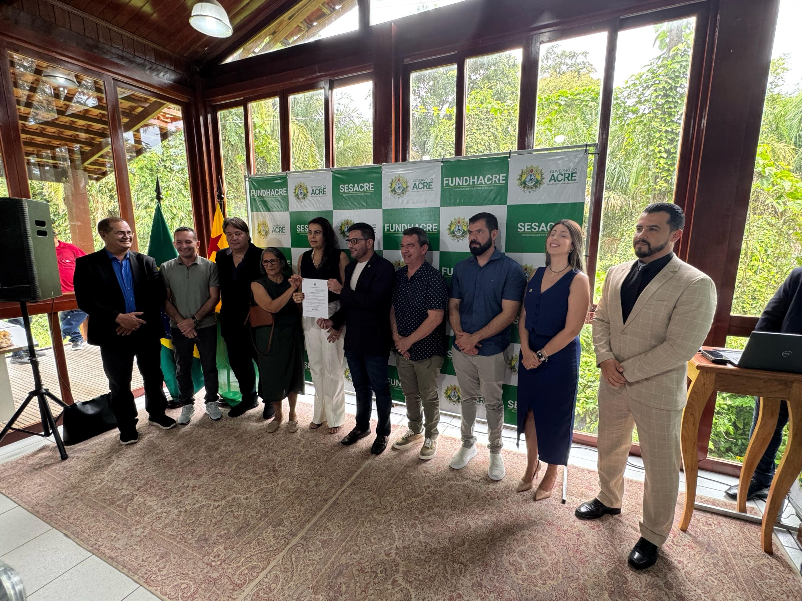 Durante a entrega de novos equipamentos para as unidades de saúde do Acre, nesta segunda-feira (24), o governador sancionou o projeto de lei de autoria do Executivo acreano que coloca o nome do ex-governador Flaviano Melo na Fundação Hospitalar do Acre (Fundhacre).
