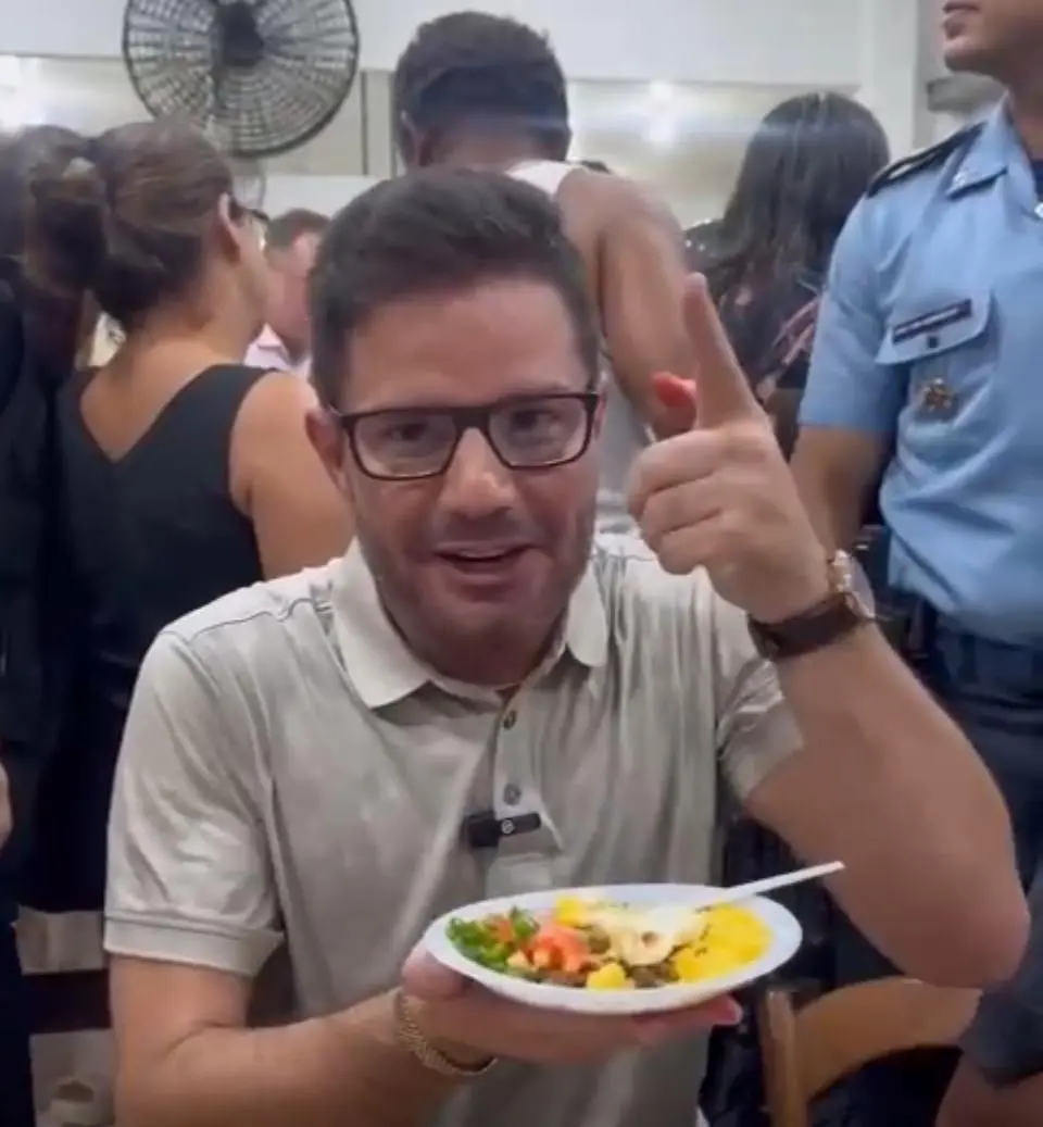 Gladson Cameli comemora aniversário de 47 anos comendo baixaria em mercado de Rio Branco. Foto: Reprodução
