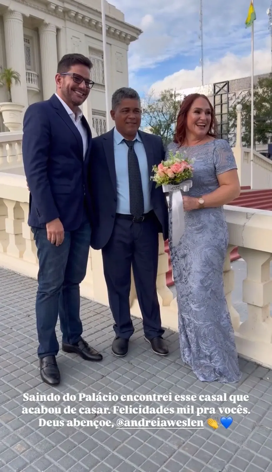 Em seus stories, Gladson Cameli publicou uma foto do casal, acompanhado da legenda: “Saindo do Palácio, encontrei esse casal que acabou de casar, felicidades”. A postagem rapidamente ganhou a atenção dos internautas, que comentaram a gentileza e o olhar atento do governador para com os cidadãos.