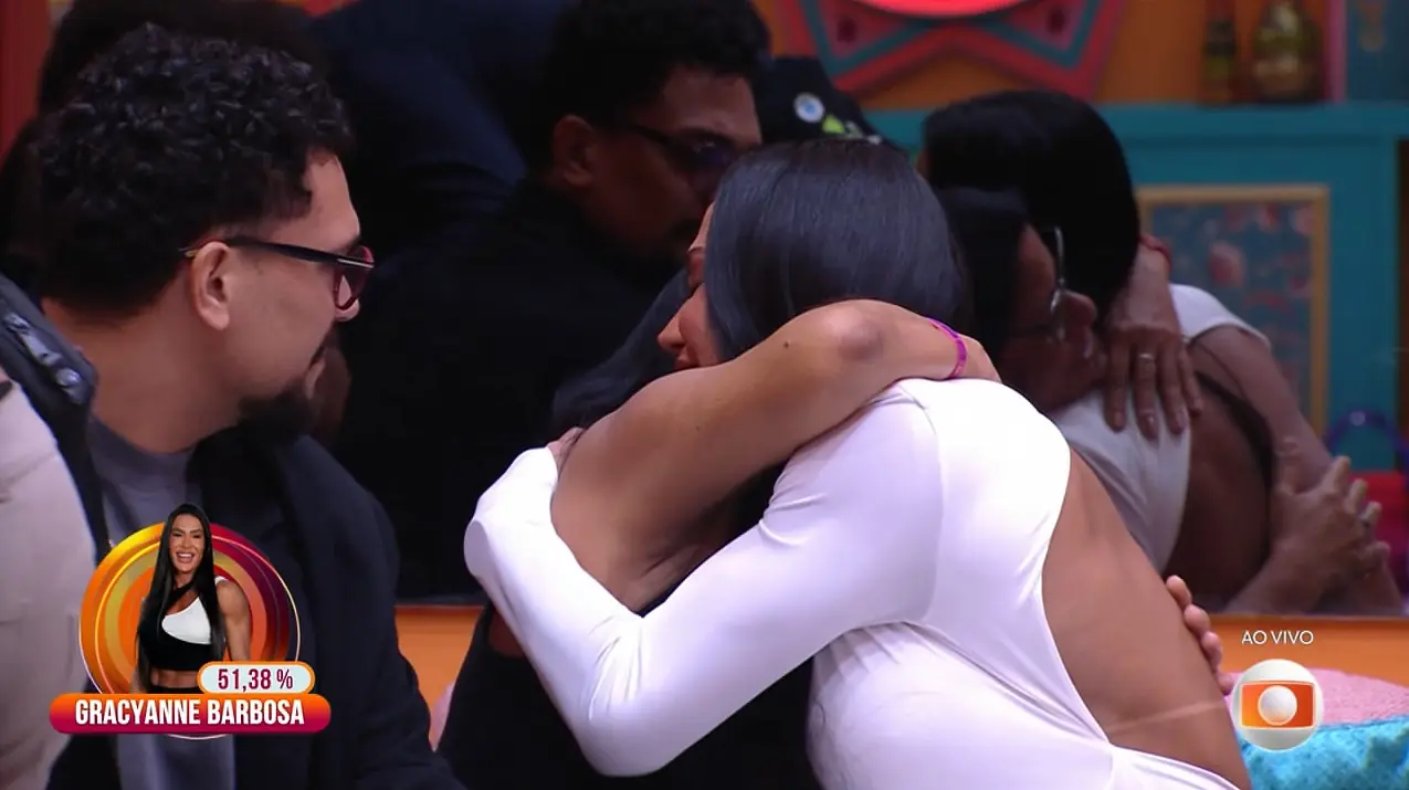 No discurso de eliminação, Tadeu Schmidt comparou Gracyanne a uma bailarina que hesita antes de saltar, a uma atleta que surpreende ao levantar um peso impressionante, mas depois desacelera, e a uma ginasta que recua diante do desafio. Ele também mencionou o impacto das informações externas trazidas por sua amiga que voltou do Paredão Falso, destacando que nem toda opinião reflete o pensamento do público geral. No fim, a votação oscilou ao longo dos dias, mas o resultado foi claro: Gracyanne foi a mais votada e deixou o reality.