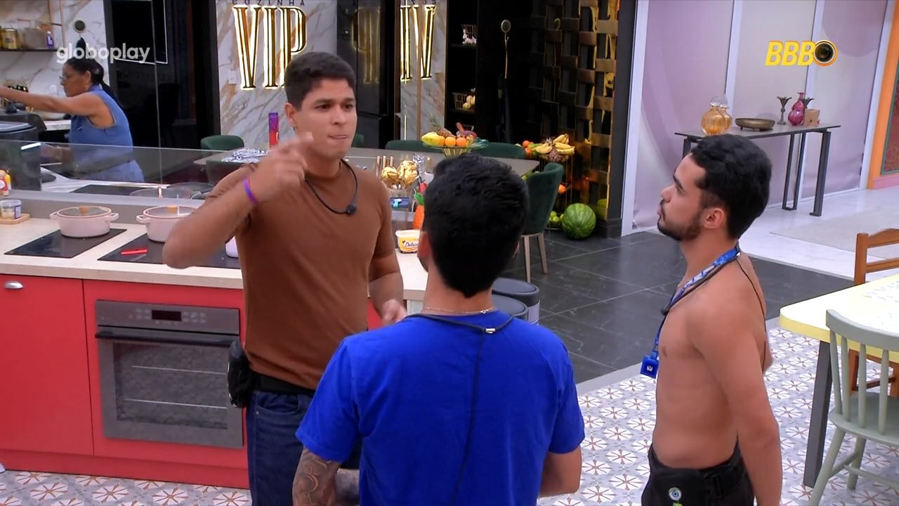 Determinado a questionar as estratégias, Guilherme confronta os gêmeos agroboys, acusando-os de votar de forma conveniente em vez de enfrentar rivais diretos. João Pedro se defende: “Mas é estratégia.” Guilherme rebate: “Pra mim é sabonetar, meu velho. Não quer comprar a briga!”