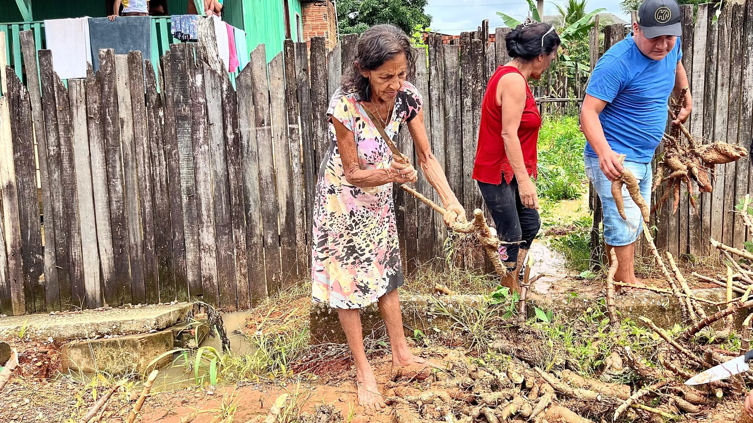 Junto com familiares e vizinhos, ela precisou arrancar todas as raízes antes que perdesse sua plantação. Maria disse que já tentarem tirá-la do local, no entanto, ela não pensa em deixar o bairro e tem esperança que neste ano as águas não atinjam sua casa.