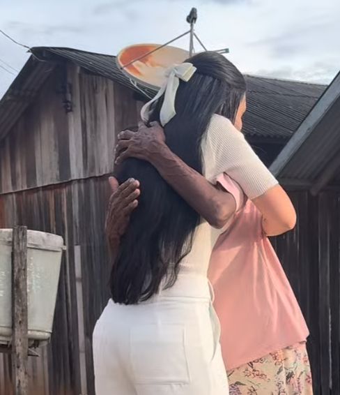 Durante a entrega, Rogéria declarou: Jesus mandou eu deixar aqui pra vocês”, reforçando o propósito que tem guiado suas recentes ações. A senhora que recebeu os mantimentos abraçou a influenciadora em um momento de gratidão.