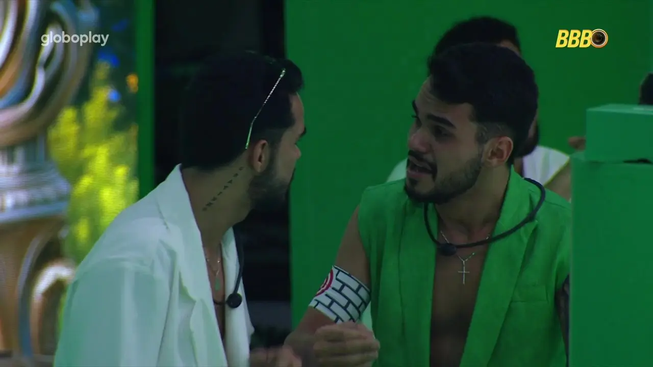 Chateado, João Gabriel sai da conversa e desabafa com Vinícius, que tenta fazê-lo refletir sobre a briga.