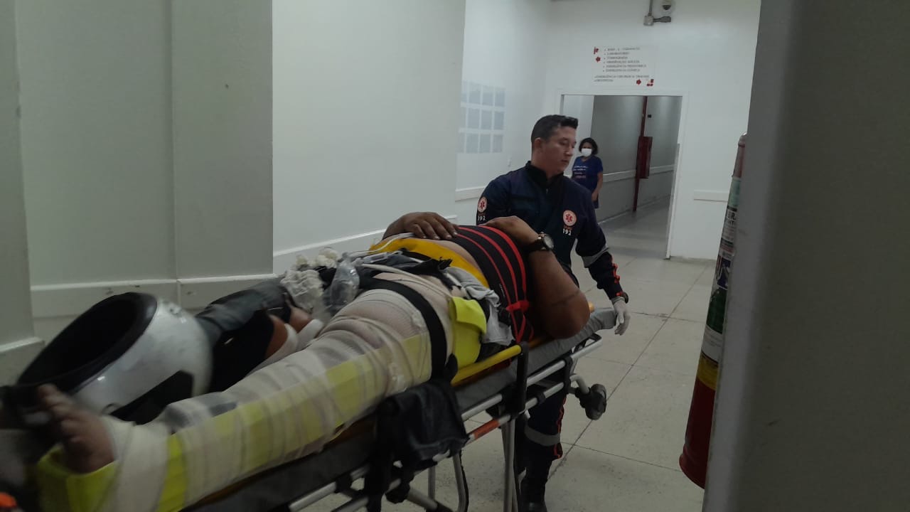 Com o impacto, o motociclista foi arremessado contra o asfalto, sofrendo uma fratura exposta na perna esquerda, além de escoriações pelo corpo.