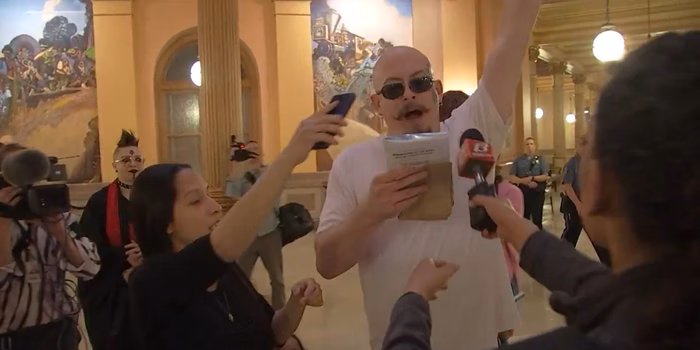 O líder de um pequeno grupo de autodenominados satanistas e outras três pessoas foram presos nessa sexta-feira (28/3), após uma briga dentro do Capitólio do Kansas (EUA) devido a uma tentativa do líder do grupo de iniciar uma “missa negra”, uma cerimônia na qual o diabo é adorado, em vez do Deus cristão.