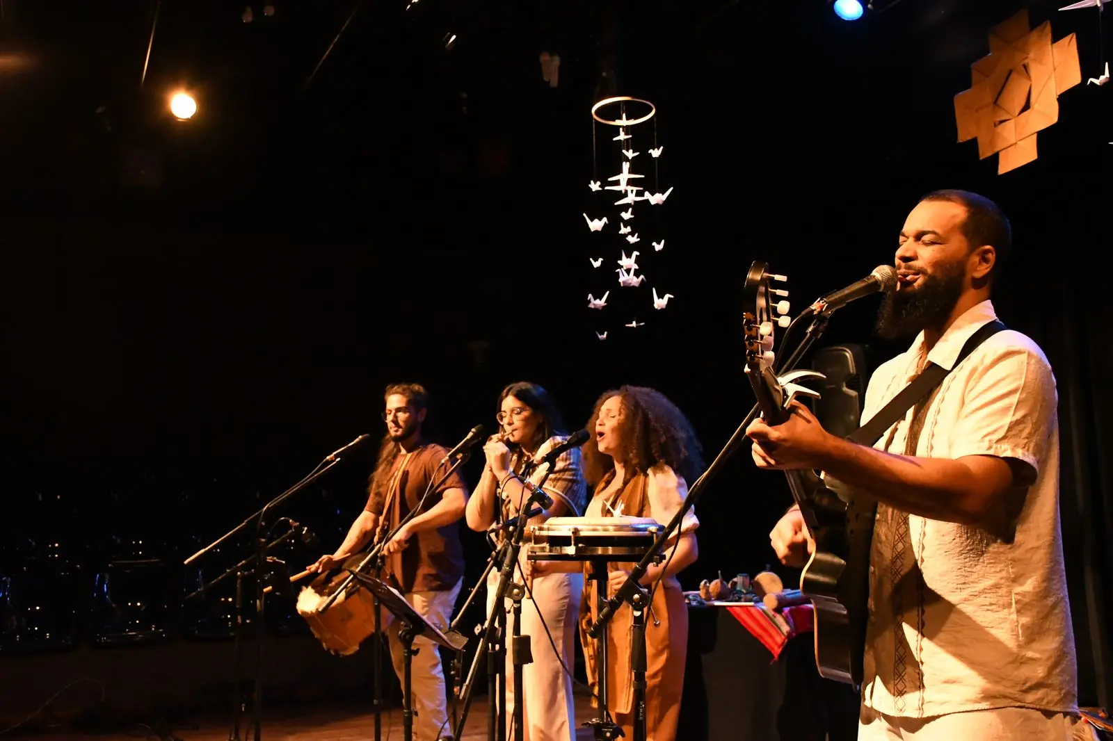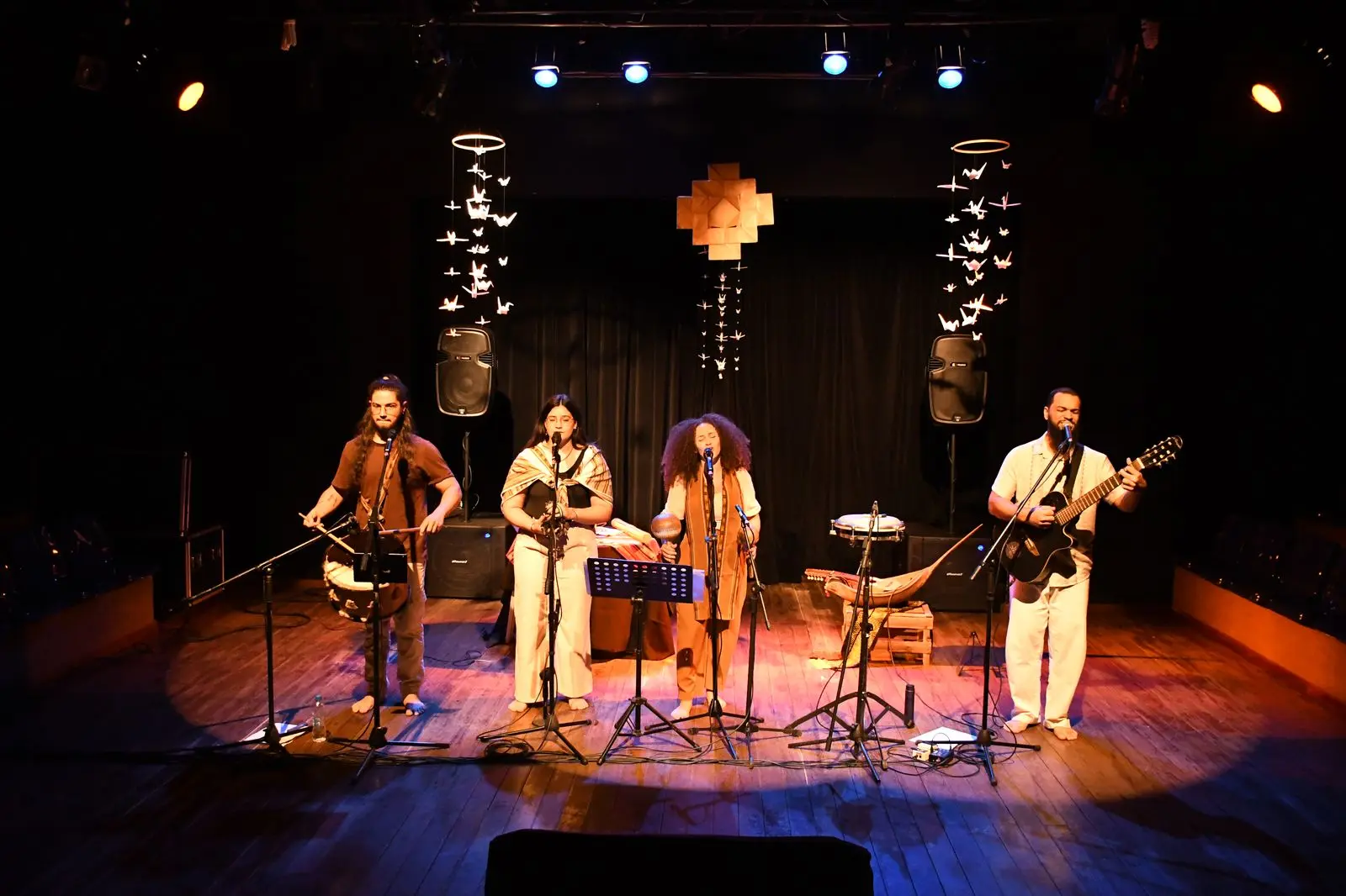 Los Chicos de Menezes em apresentação no Sesc Bosque, da esquerda para a direita: Guilherme Ferreira, Sophia Sauer, Jehnny Lima e Deivid de Menezes.