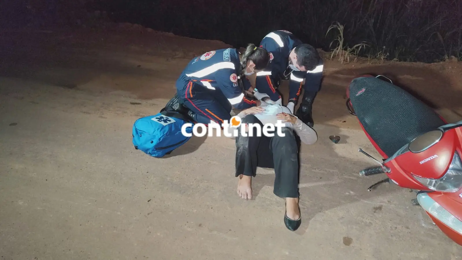A idosa Teresa de Oliveira Feitosa, de 60 anos, e sua filha, Girliane Feitosa da Silva, de 37 anos, ficaram feridas após um acidente de moto na noite desta quarta-feira (5), no km 1 da rodovia AC-10, em Rio Branco.