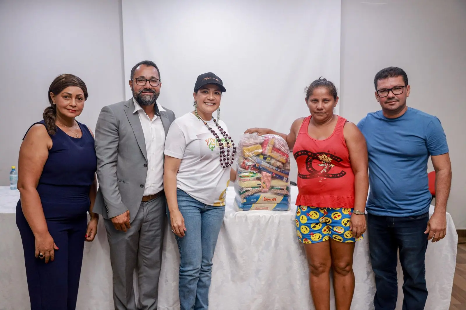 Mailza entrega alimentos a famílias carentes vítimas da enchente do Rio Envira, em Feijó