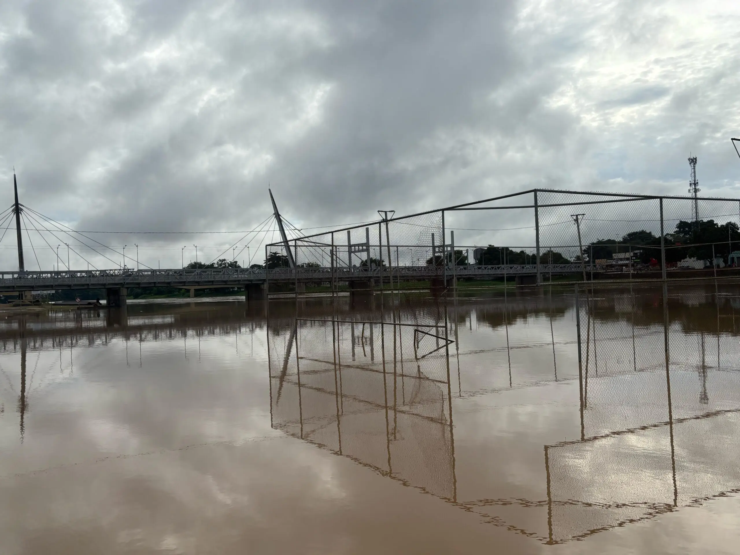 O rio está mais de 1 metro acima da cota de transbordamento, que é de 14 metros.
