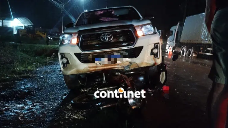 Ainda de acordo com o relato policial, a motocicleta e a Saveiro trafegavam no mesmo sentido, do centro da cidade em direção à rodovia, quando a caminhonete atingiu a traseira da moto, que havia parado no meio da pista para acessar uma rua à esquerda. No momento do impacto, a Hilux, que vinha no sentido oposto, não conseguiu desviar e também se envolveu na colisão.