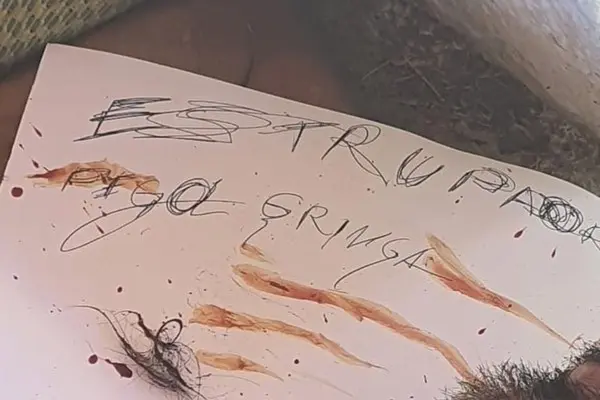 Ao lado da cabeça da vítima havia um bilhete com a frase “estuprador pega Gringa”.