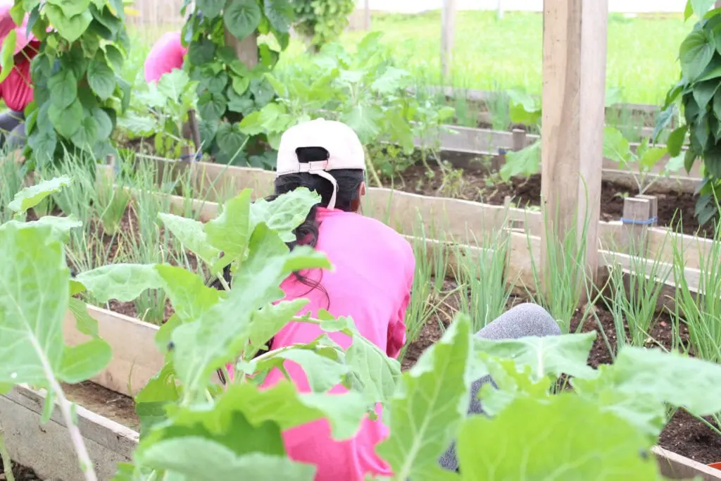 Outro projeto desenvolvido dentro do presídio feminino de Rio Branco é o cuidado com a horta, que atualmente conta com 10 voluntárias. As detentas alternam os dias de trabalho.