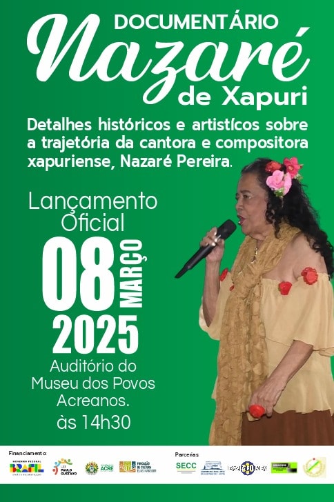 “O filme oferece uma visão sobre a verve artística e histórica de Nazaré Pereira, trazendo elementos que representam a nossa terra, como a vida nos seringais e os caminhos percorridos por essas pessoas. É um resgate de uma personalidade que levou a cultura amazônica ao mundo e se revelou um verdadeiro talento musical”, afirma o diretor, que também preside a Academia Acreana de Letras (AAL).