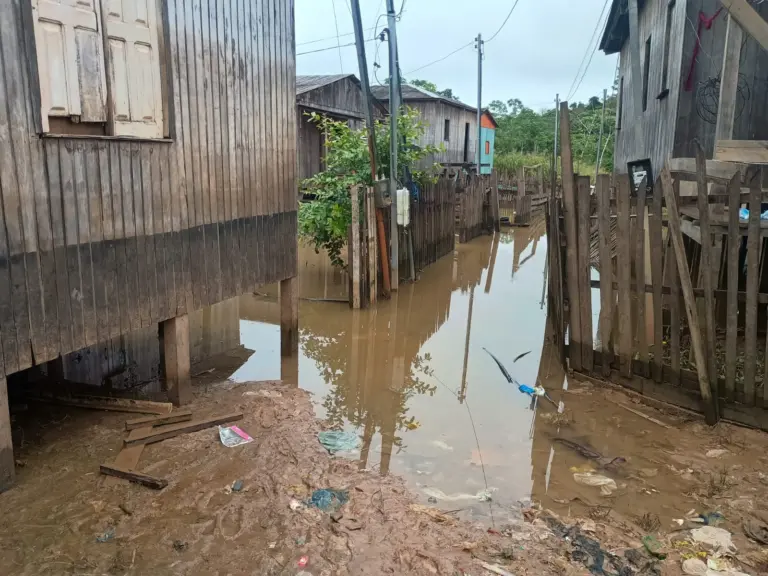 Até o momento, o bairro mais atingido em Sena Madureira é a praia do Amarílio, onde a água da enchente inundou vários quintais e estava prestes a atingir o assoalho das casas.